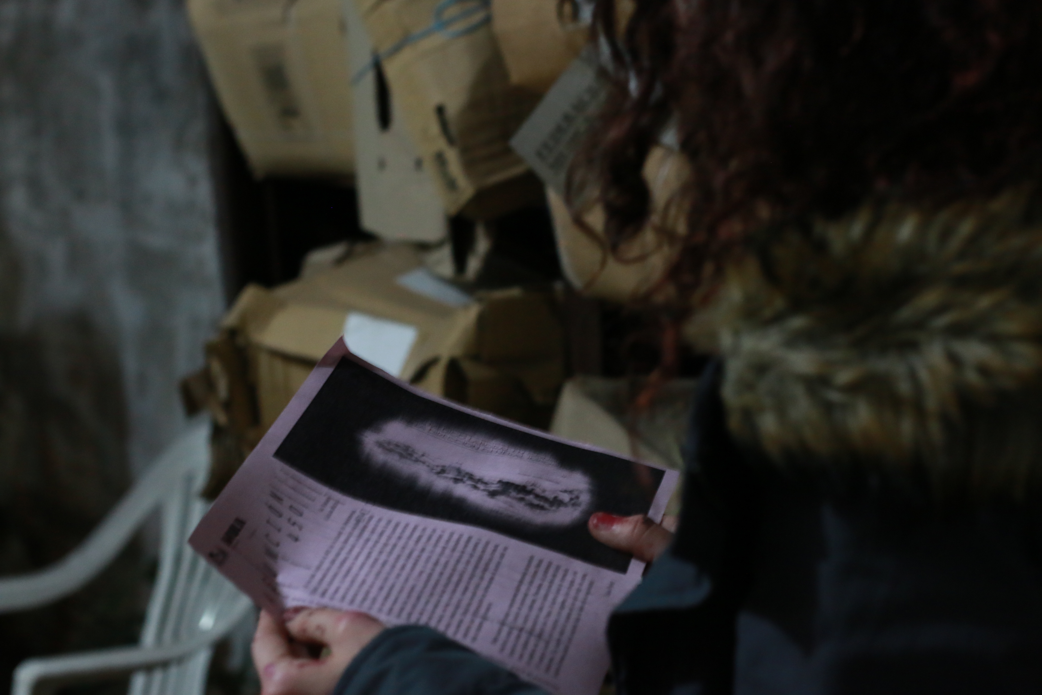 En la fachada, dos representaciones prototípicas de una casa, la lámpara de entrada y el buzón, ostentan la forma de un hogar con un techo a dos aguas, como si la noción habitacional de una familia se escurriera sobre objetos funcionales. Otra pista: sobre algunos muros y puertas figuran dibujos infantiles. Corazones con brazos y piernas, caras redondas y sonrientes, posibles retratos de familia: la ternura de estas imágenes se torna espectral y opera como vestigio de una instancia previa, ahora completamente aplastada por la masa-archivo. La fantasmagoría figurativa, incluso pedagógica, emerge con una potencia inusitada. Tanto el pasado, representado por estas ruinas visuales, como el presente, ocupado por el archivo médico, encuentran un punto de fuga anacrónico en el intersticio, reclamado por los espectros como morada y territorio. Desde estos espacios liminares será posible llevar a cabo la asunción.